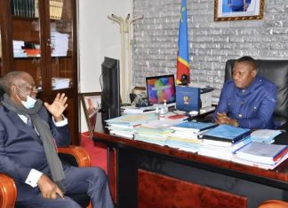 L’inspecteur Général chef de service Jules Alingete a reçu le gouverneur de province de lualaba Richard muyej ce vendre 09 avril 2021 dans...