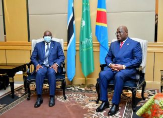 Le Chef de l'État, Félix-Antoine Tshisekedi Tshilombo a eu une séance de travail avec Son homologue Dr. Mokgwetsi Eric Keabetswe Masisi, Président...