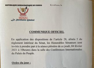 Dans un communiqué officiel publié ce mercredi 03 Février 2021, signé par le Secrétaire Général du Sénat Gilbert Kikudi Kongolo Ndjibu, tous...