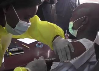 Le Docteur Jean-Jacques Mbungani et Véronique Kilumba, respectivement ministre et vice-ministre de la santé publique, hygiène et prévention, se sont faits vacciner...