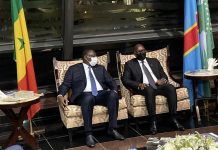 Le Président sénégalais Macky Sall accueilli ce mercredi soir à l’aéroport international de Ndjili...